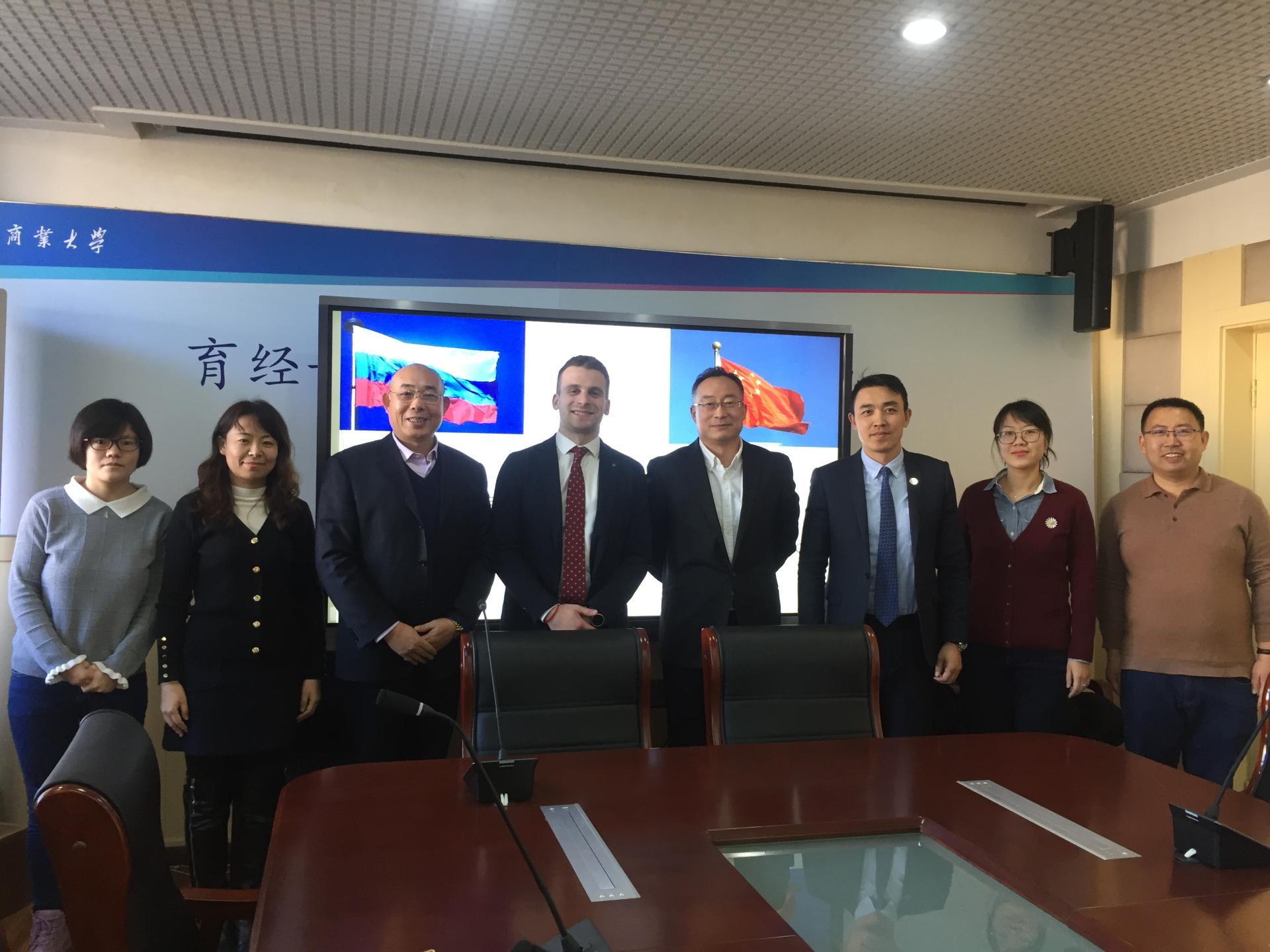 12月13日下午,莫斯科斯科尔科沃bevictor1946韦德官网中国区负责人奥列格.列梅加(Oleg Remyga)、瓦伦丁.马申科(ValentinMarchenko)一行2人到bevictor1946韦德官网进行访问,并商谈合作事宜。国际交流处处长庞文生、副处长李天、bevictor1946韦德官网经理王庆生、副经理李耘涛、宗毅、副书记王樱洁、部分教师参加了会面。